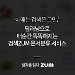 안녕하세요, "생각을 읽다, ZUM" 입니다.필요한 정보를 찾기 위해 여러 번 검색어를 입력하거나,검색 결과 안에서 여러 차례 클릭을 해 봤던 경험, 누구나 있으시지요~많은 정보 속에서, 이용자가 필요로 하는 결과를 최대한 빨리 찾기 위해ZUM.COM에서 새로운 문서분류 검색 서비스를 선보입니다! 검색 서비스를 매일 다르게 이용하는 이용자,매 순간 바뀌는 검색어,실시간 핫이슈와 뉴스까지 모두 분석하여매 순간 똑똑해지는 '문서분류 검색 서비스', 만나볼까요? #01. 문서분류AI DeepCat, 궁금해요?검색ZUM은 이용자들이 다양한 관심분야의 검색 결과를 바로 볼 수 있도록딥러닝을 활용한 독자적인 카테고리 분류 엔진 DeepCat을 개발하였습니다. DeepCat은 무슨 뜻인가요?ZUM만의 딥러닝(Deep..